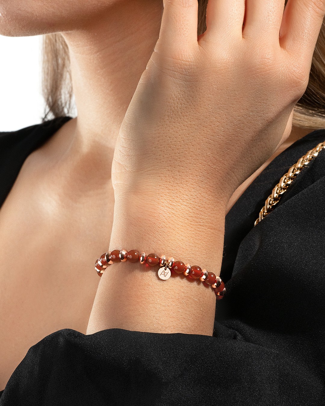 - Matière du bracelet Rosévergoldeter Edelstahl und roter Karneol