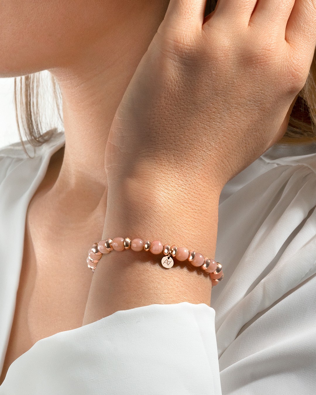 - Matière du bracelet Rosévergoldeter Edelstahl und Sonnenstein