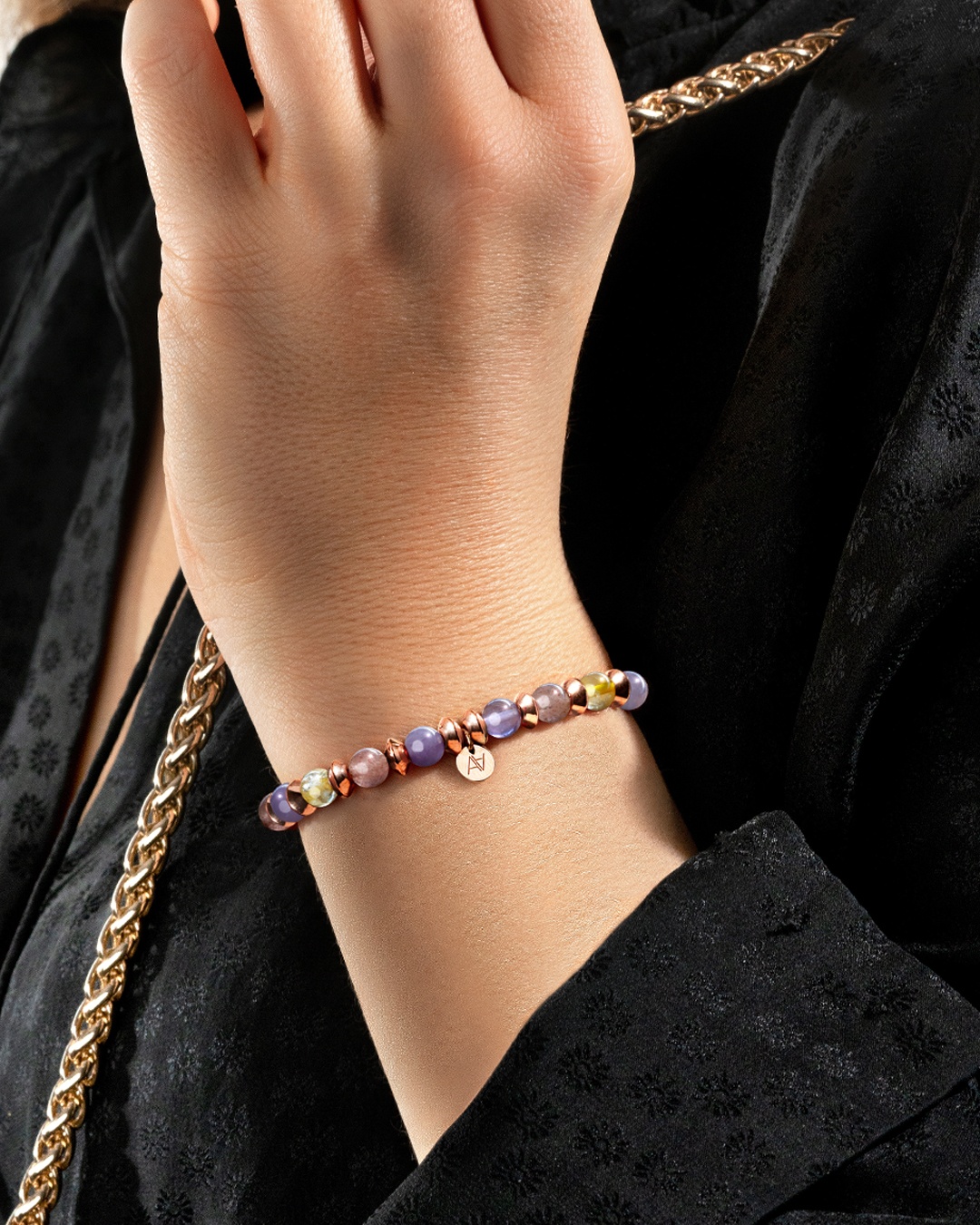 - Matière du bracelet Rosefarbener Edelstahl und super seven