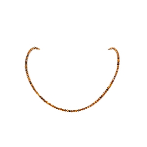 An dieser doppelten Kette sind wunderschöne facettierte Tigeraugensteine angebracht.
