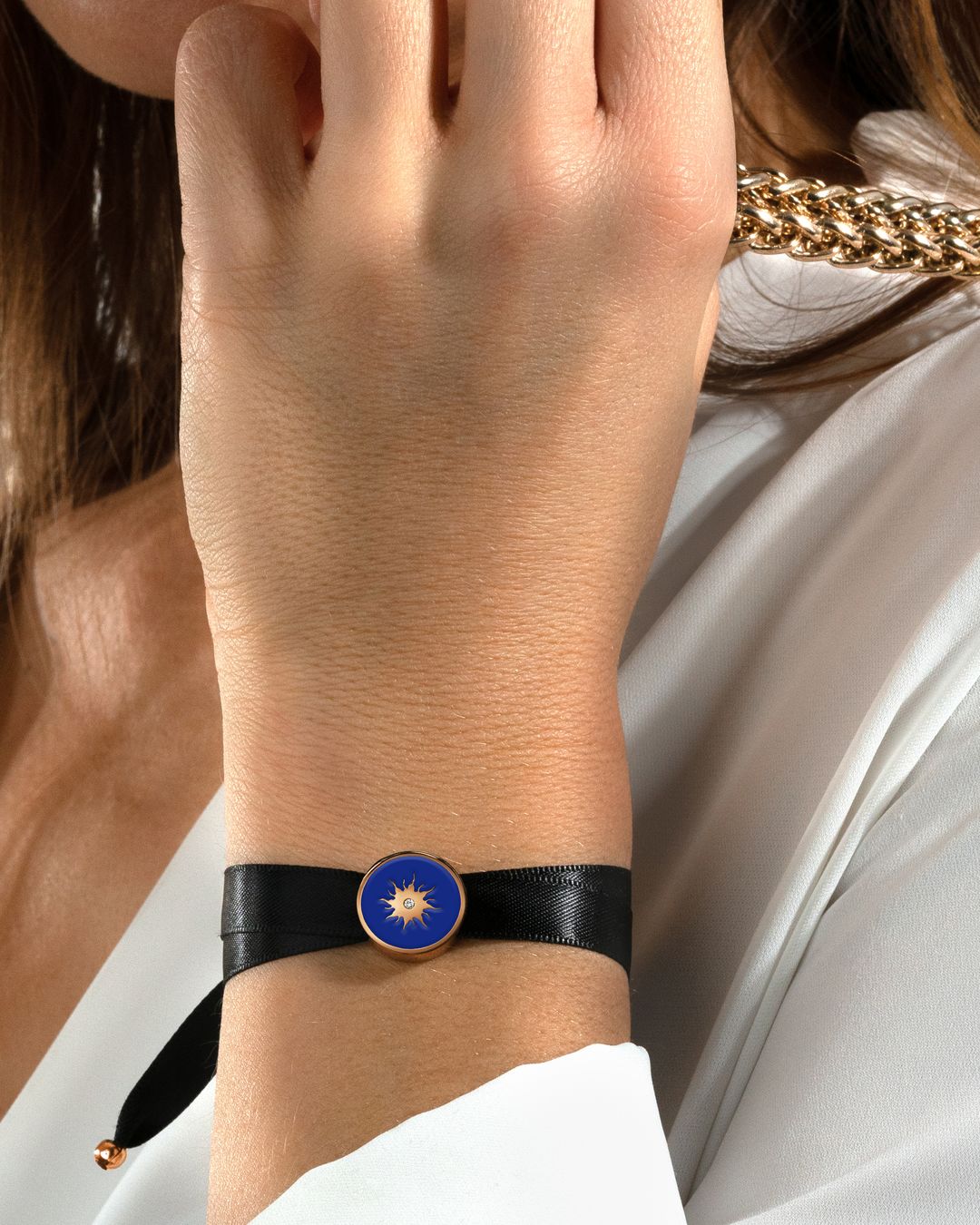 Das seidige Band verleiht dieser Kreation eine besondere Geschmeidigkeit.